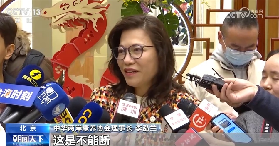 此外,中華兩岸康養(yǎng)協(xié)會(huì)理事長(zhǎng)李泓蘭稱:“我覺得兩岸的融合發(fā)展已經(jīng)你中有我、我中有你,在各個(gè)產(chǎn)業(yè)鏈都是如此,就如同我們的血脈親緣關(guān)系一樣,不是說(shuō)斷就能斷的,不能斷,就像兩岸的交流也不能斷,要靠我們這一代代代相傳、生生不息地傳接下去?!?/p>