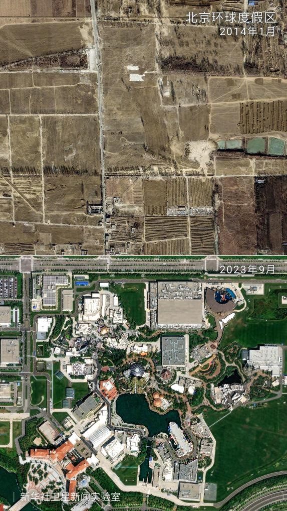 記者借助萬米高空拍攝的衛(wèi)星圖片,展現(xiàn)了“千年之城”發(fā)展的十年蝶變?!?/p>
