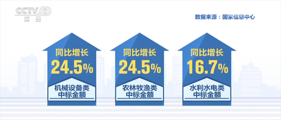在投資方面,今年1、2月份,與工程項(xiàng)目投資立項(xiàng)、建設(shè)相關(guān)的指標(biāo)較去年同期增長(zhǎng)明顯。國(guó)家信息中心監(jiān)測(cè)數(shù)據(jù)顯示,今年1—2月全國(guó)項(xiàng)目投資中標(biāo)金額同比增長(zhǎng)9.1%。其中,機(jī)械設(shè)備類、農(nóng)林牧漁類、水利水電類等中標(biāo)金額分別同比增漲24.5%、24.5%、16.7%??梢钥闯?,在多項(xiàng)支持政策的共同推動(dòng)下,我國(guó)制造業(yè)重點(diǎn)行業(yè)投資持續(xù)向好,民生補(bǔ)短板投資力度不斷加大。?