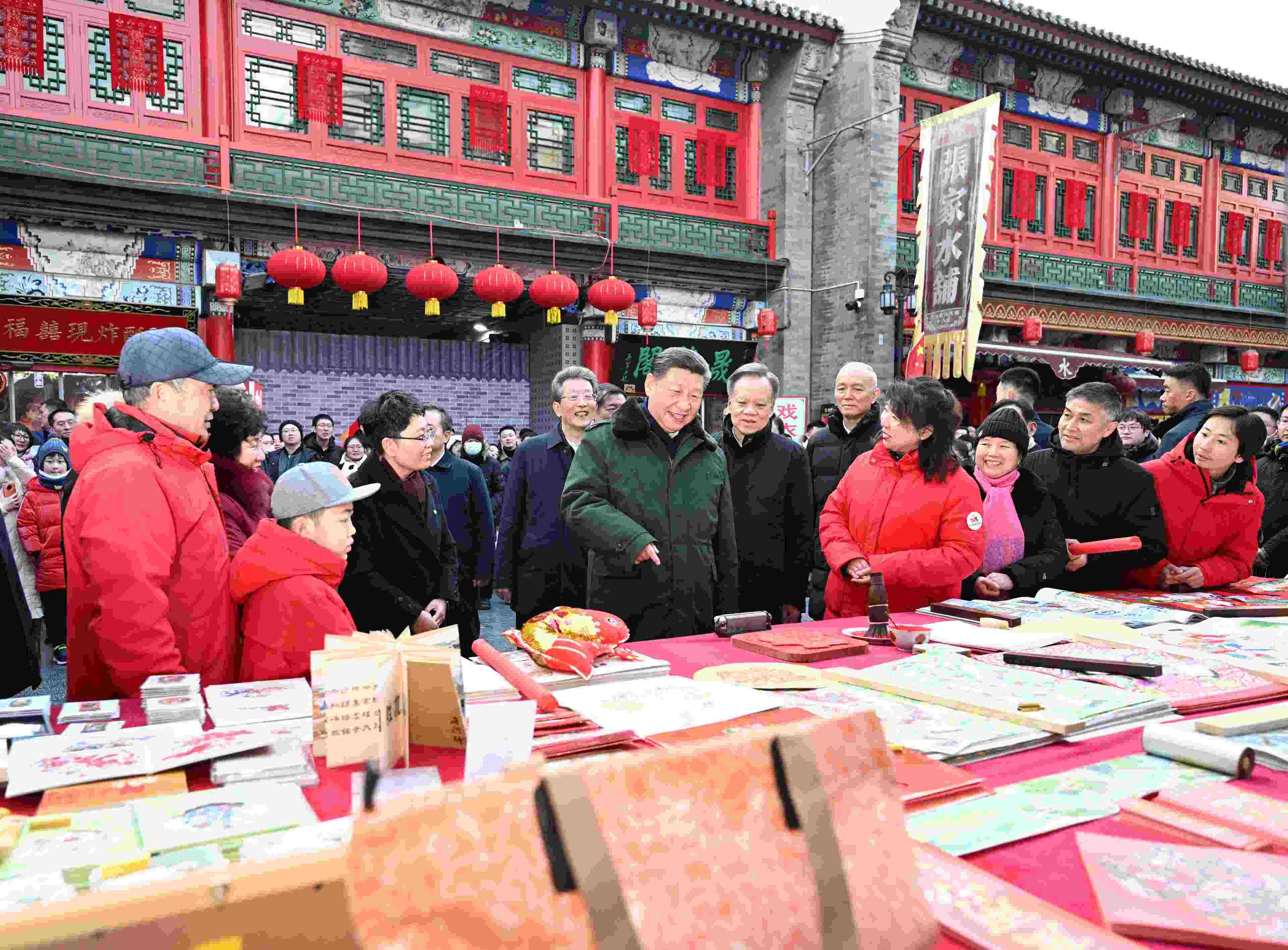 △ 2024年2月1日,習近平總書記在天津古文化街考察時,同店鋪員工和現場群眾互動交流。