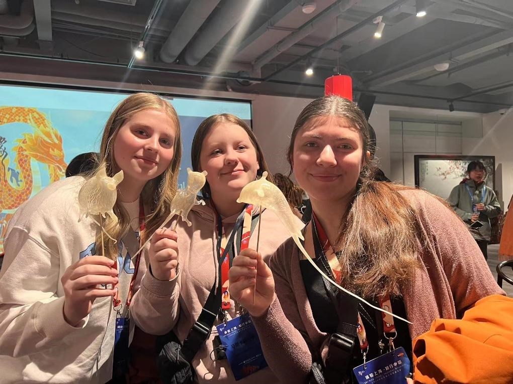△ 2024年1月下旬,馬斯卡廷中學訪華代表團學生在上海體驗民俗活動。