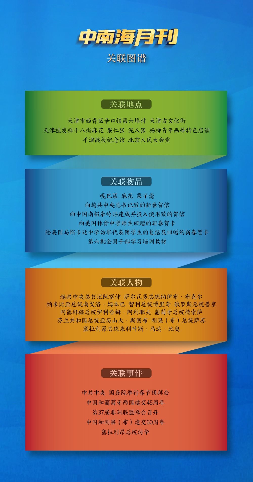 分析觀察央視網I學習數據庫生成的本月關聯(lián)圖譜,很多重要的關聯(lián)物品、關聯(lián)人物、關聯(lián)地點、關聯(lián)事件都與春節(jié)和中華優(yōu)秀傳統(tǒng)文化緊密相關。