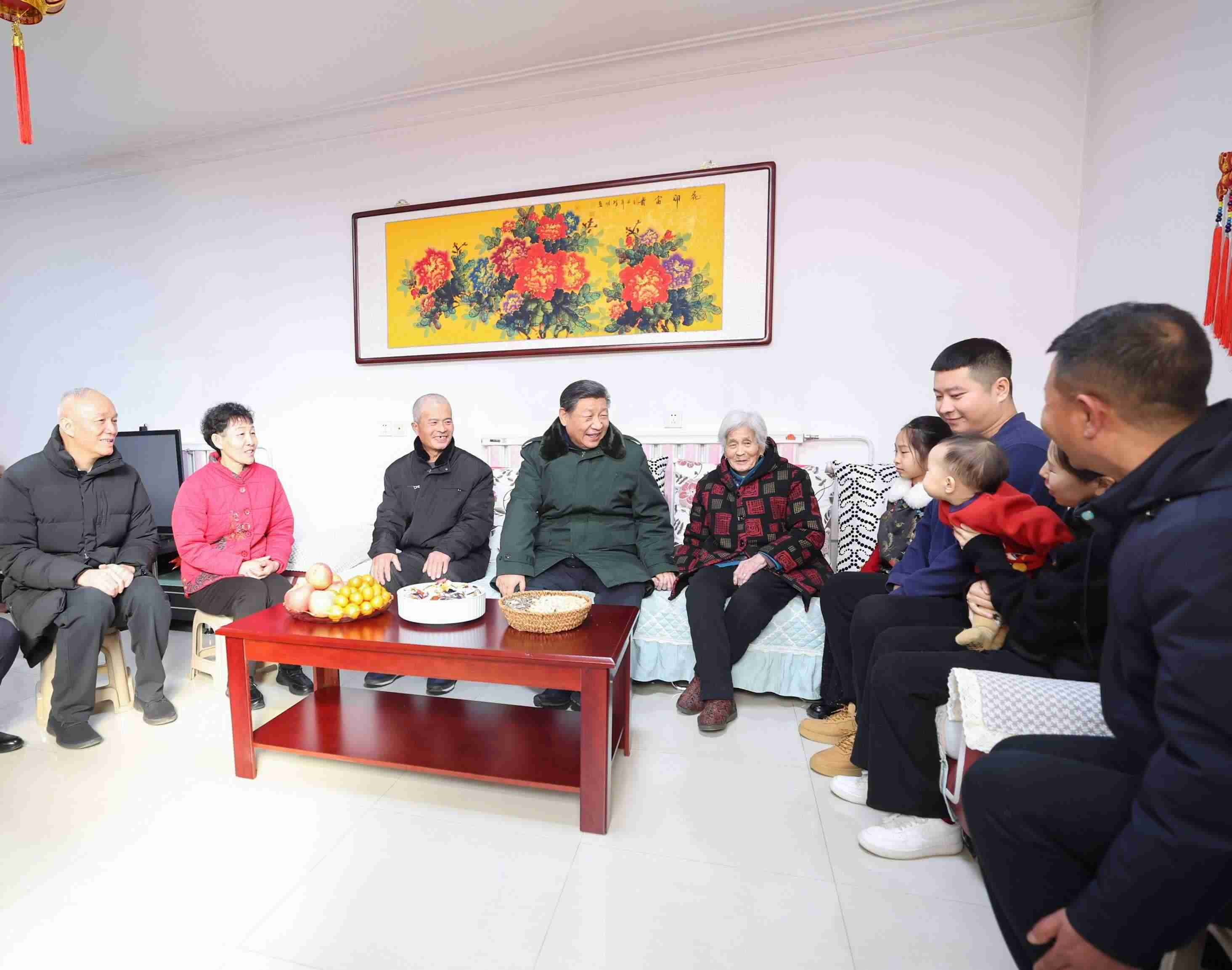 △ 2024年2月1日,習近平總書記在天津市西青區(qū)辛口鎮(zhèn)第六埠村考察時,同村民杜洪剛一家人親切拉家常。