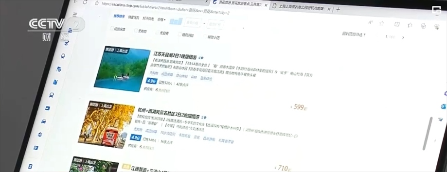 記者在某旅游平臺官網(wǎng)首頁搜索發(fā)現(xiàn),不少旅游產(chǎn)品都打上了“踏青賞花”“賞花特惠”等標(biāo)簽。無論是短途一日游,還是長線賞花游,銷量都十分可觀。