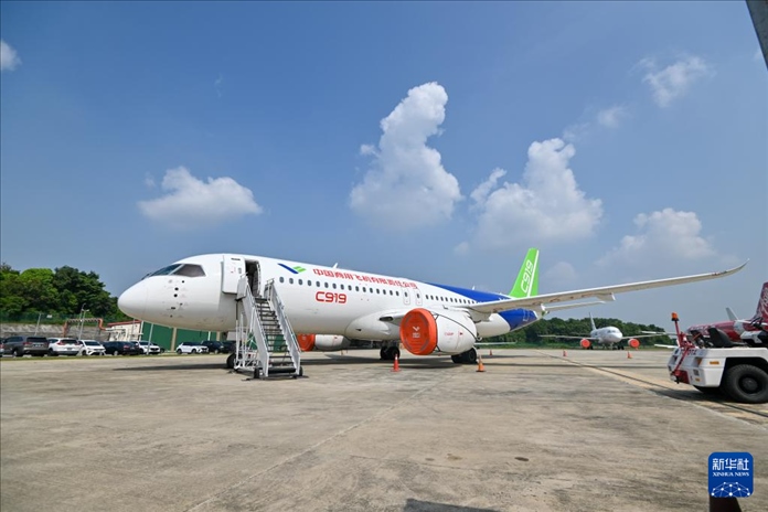 3月13日,中國(guó)國(guó)產(chǎn)商用飛機(jī)C919大飛機(jī)在馬來(lái)西亞雪蘭莪州的蘇丹阿卜杜勒·阿齊茲·沙阿機(jī)場(chǎng)作靜態(tài)展示。新華社發(fā)(張紋綜攝)