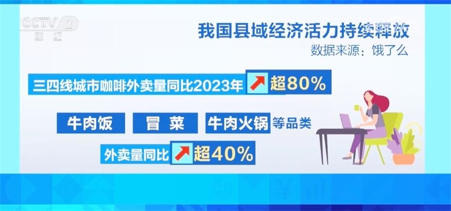今年以來,三四線城市的餐飲消費活力持續(xù)釋放。來自某生活服務(wù)平臺的數(shù)據(jù)顯示,今年開年后,三四線城市咖啡外賣量同比去年增長超過80%,牛肉飯、冒菜、牛肉火鍋等品類外賣量同比增長超過40%。春節(jié)假期期間,三四線城市螺螄粉、甜品、沙拉輕食、咖啡和奶茶果汁等熱門餐食的外賣量更是同比增長超過1倍。