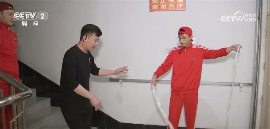 中午兩點左右,史昌換班,可以休息一會兒,趁著這個空檔,史昌帶上兩個徒弟去樓梯間訓(xùn)練甩面。甩面是史昌所在火鍋店吸引客流的重要業(yè)務(wù),去年史昌一共帶了3個徒弟。隨著門店生意日漸紅火,史昌預(yù)計今年得帶出9個徒弟。