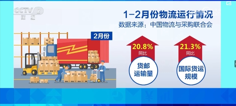 航空物流淡季不淡,2月份,貨郵運(yùn)輸量同比增長(zhǎng)20.8%,國(guó)際貨運(yùn)規(guī)模同比增長(zhǎng)21.3%。電商物流運(yùn)行穩(wěn)中向好,1—2月份,中國(guó)電商物流指數(shù)平均值升至近年來(lái)的最高水平。