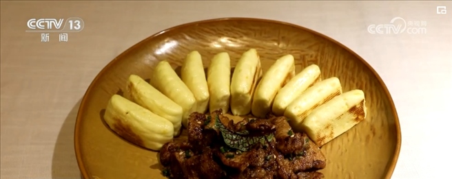 不僅僅是氛圍的打造,菜品創(chuàng)意也在還原原著中十二道菜品的基礎(chǔ)上,再對其進(jìn)行創(chuàng)新和延伸, “可卿山藥棗泥糕”“鳳姐火腿肘子”“寶釵胭脂鵝”等獨(dú)具紅樓特色的菜品,都可以在這里吃到。這朵以假亂真的花朵是這里的一道招牌菜,由魚茸制作而成的“黛玉傳花”,來自上海的房阿姨對這道菜尤為喜愛。