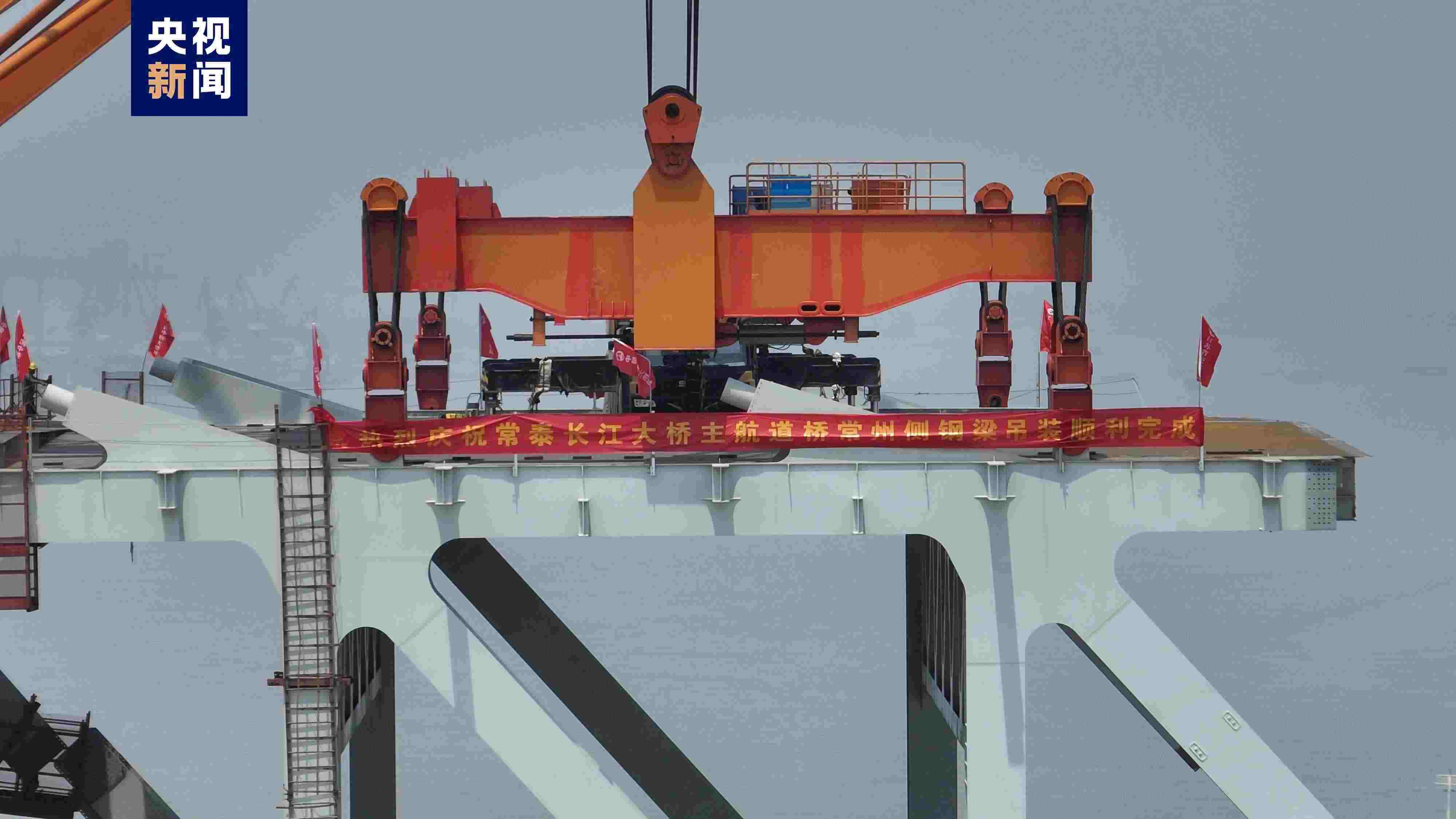 5月7日上午,常泰長江大橋主航道橋常州側(cè),最后一個大節(jié)段鋼梁平穩(wěn)吊裝完成,標(biāo)志著常泰長江大橋常州側(cè)主體工程全部完成,全橋預(yù)計(jì)6月合龍。