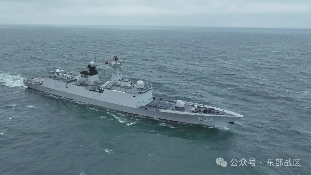 ▲我護(hù)導(dǎo)編隊與東引島同框。