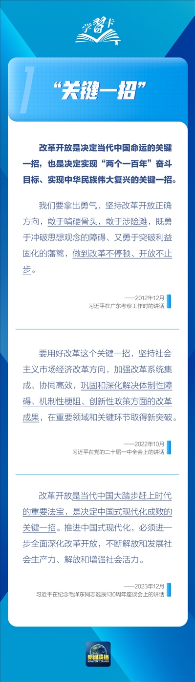 改革開放是當(dāng)代中國大踏步趕上時代的重要法寶,是決定中國式現(xiàn)代化成敗的關(guān)鍵一招。
