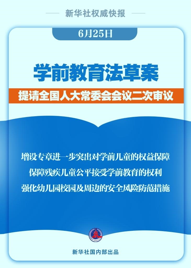 學(xué)前教育法草案6月25日提請(qǐng)全國(guó)人大常委會(huì)會(huì)議二次審議。