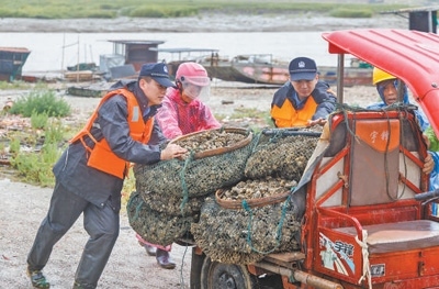 在臺風“格美”登陸前夕,福建省莆田市涵江區(qū)黨員干警幫助養(yǎng)殖戶趕在臺風來臨前搶運海產品回家。劉曉宇 林鴻達攝影報道
