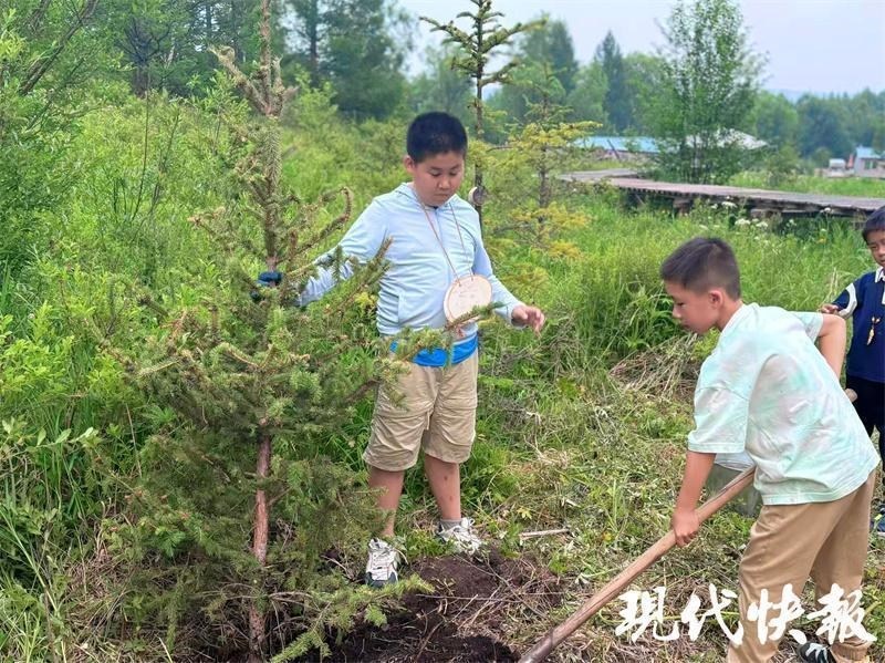 這樣的美麗風景讓第一次來到大草原的周云昊很興奮?!拔覀儚漠?shù)亓私獾?,這是一代又一代人努力的結果,讓我們也深切感受到生態(tài)保護的重要性?!毖袑W途中,周云昊和小伙伴們還專門在當?shù)亓謭龇N下一棵樹?!跋M芙】甸L大,成為守護綠色草原的小衛(wèi)士。”