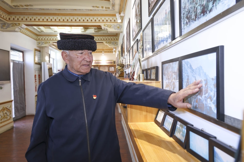 2024年9月15日,在新疆塔什庫(kù)爾干塔吉克自治縣提孜那甫鄉(xiāng),巴依卡·凱力迪別克在家中講述護(hù)邊往事。新華社發(fā)(姬文志 攝)