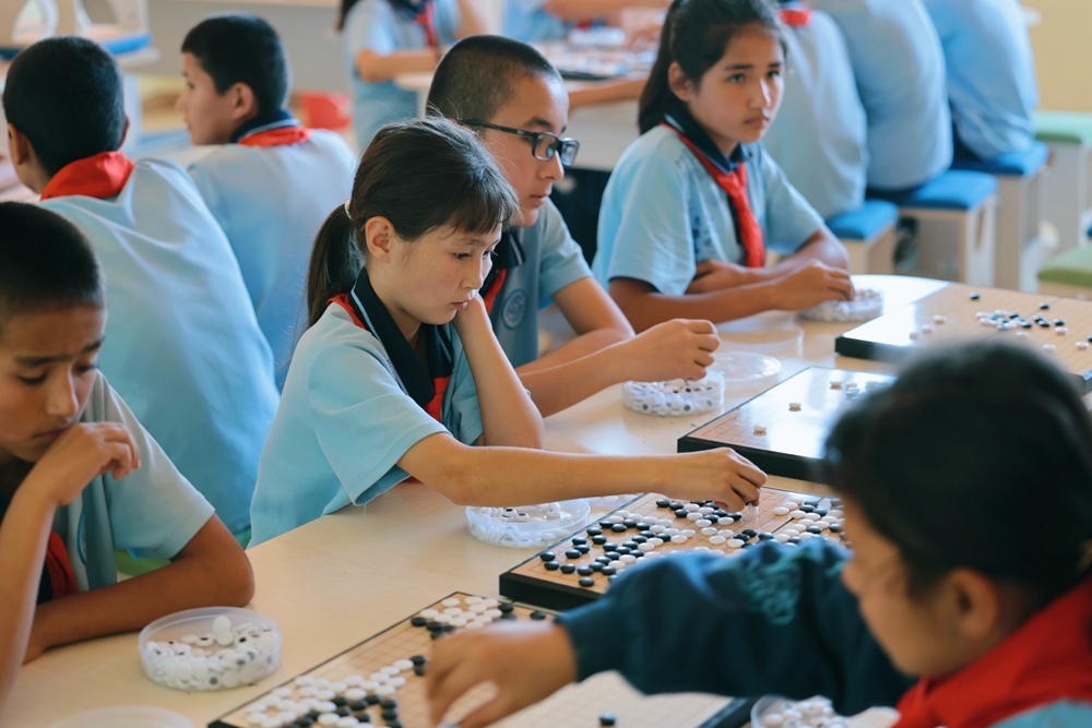 2024年9月23日,在新疆烏什縣依麻木鎮(zhèn)國(guó)家通用語言學(xué)校,學(xué)生們?cè)谙聡?。新華社記者 任沁沁 攝