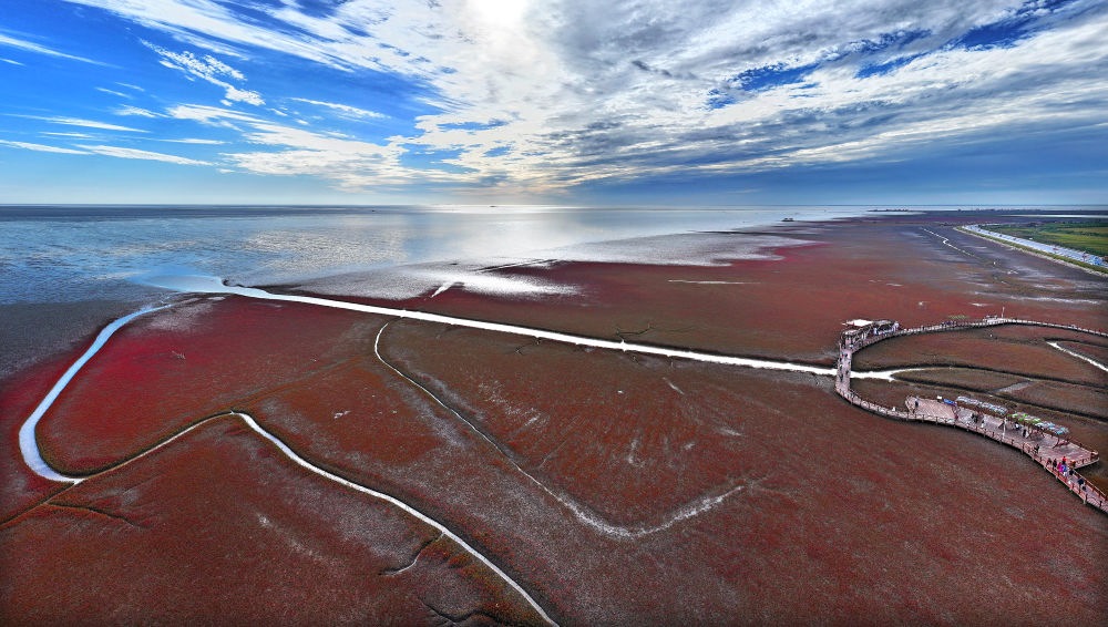 遼寧海濱,北緯39度的海風(fēng)掠過(guò)浮光躍動(dòng)的海灣,丹頂鶴在紅海灘間蹁躚起舞;海岸線上,執(zhí)法船在巡航,電子眼守護(hù)著潔凈的沙灘;沙灘上,志愿者拾起漂浮的塑料瓶……交織成一幅動(dòng)人的生態(tài)畫卷。