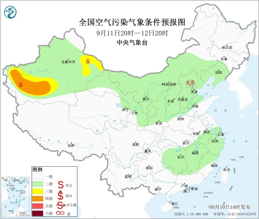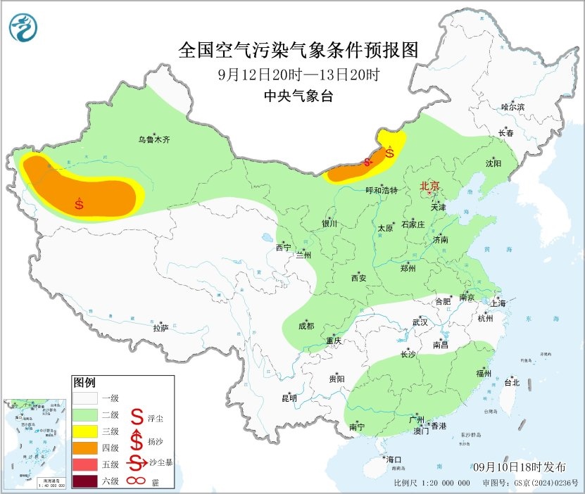 中新網9月10日電 據中央氣象臺網站消息,未來一周,全國大部地區(qū)大氣擴散條件較好,無明顯霾天氣。13日內蒙古中部偏北部分地區(qū)有沙塵天氣。
