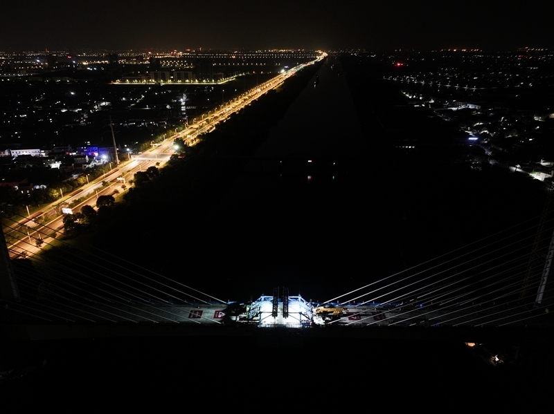 7月1日凌晨,由中國鐵建大橋局承建的滬渝蓉高鐵通泰揚特大橋跨引江河斜拉橋順利合龍。