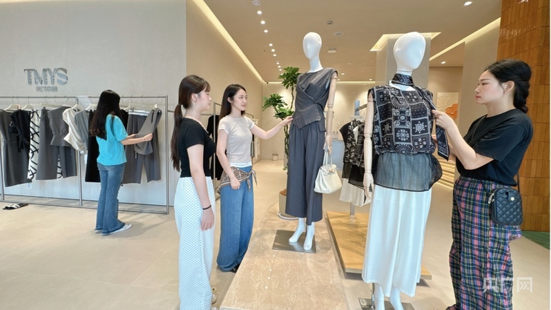 市民在“天門衣尚”品牌館內挑選衣服(央廣網(wǎng)發(fā) 天門市委宣傳部供圖)