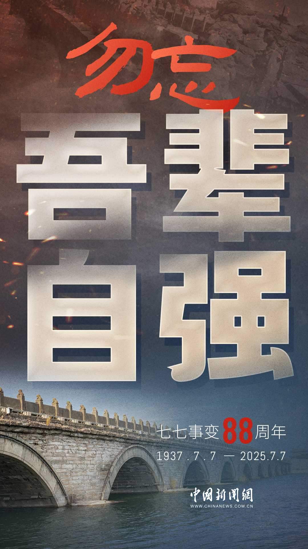 1937年7月7日,盧溝橋的槍聲撕裂長夜,中華兒女赴湯蹈火,以血肉之軀筑起御敵長城。88載歲月流轉(zhuǎn),硝煙雖散,彈痕猶在,那段浸透血淚的歷史,是刻在民族記憶里永不褪色的烙印。今日山河錦繡,國泰民安,正是先烈用生命換來的盛世。七七事變88周年,致敬英烈,銘記國殤,吾輩自強(qiáng),護(hù)山河無恙!