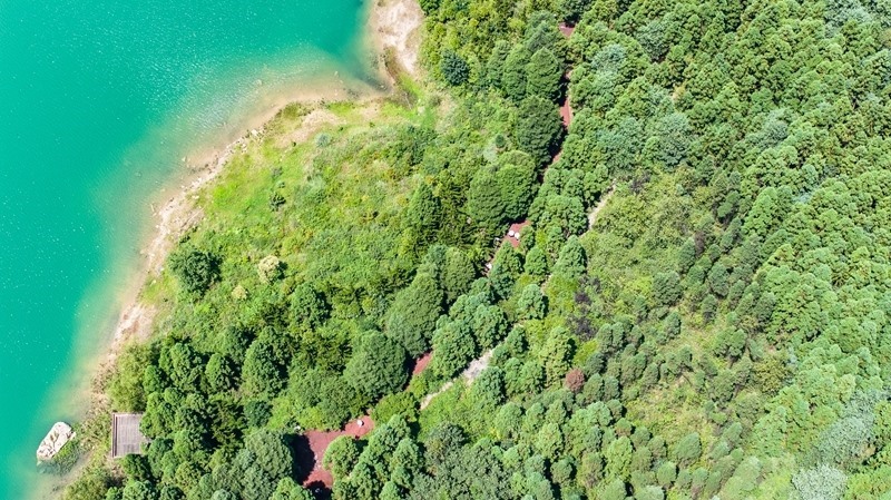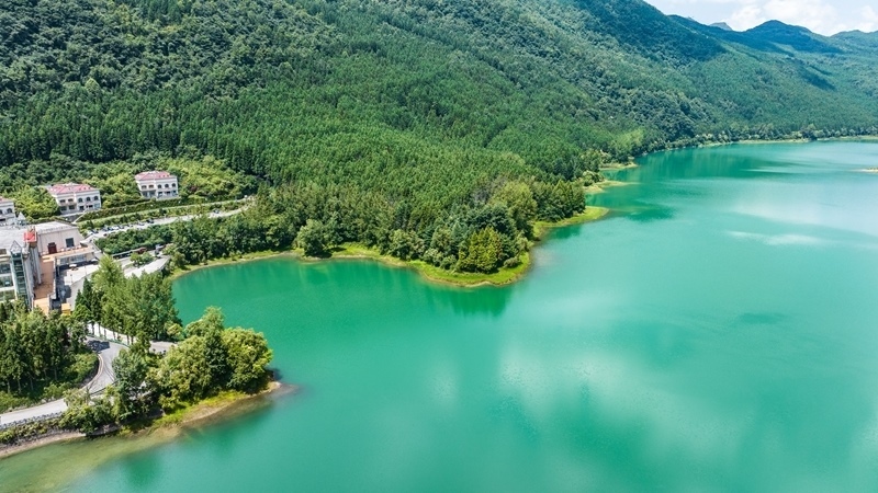 這是7月30日拍攝的六盤水市鐘山區(qū)瑤池公園風(fēng)光(無(wú)人機(jī)照片)。