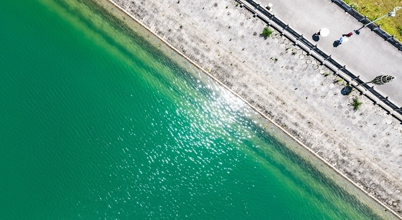 7月30日,游客在瑤池公園內(nèi)漫步游玩(無(wú)人機(jī)照片)。