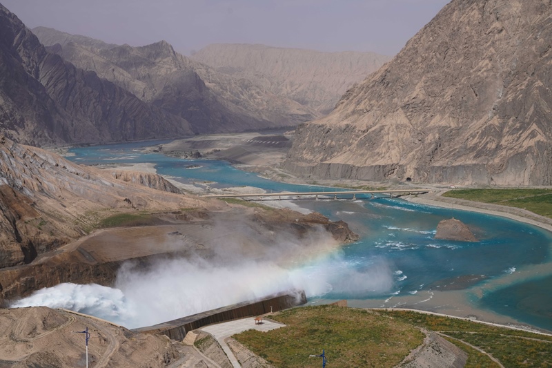 阿爾塔什水利樞紐工程位于新疆維吾爾自治區(qū)喀什地區(qū)莎車縣霍什拉甫鄉(xiāng)和克孜勒蘇柯爾克孜自治州阿克陶縣庫(kù)斯拉甫鄉(xiāng)交界處,是葉爾羌河山區(qū)控制性水利樞紐工程,總庫(kù)容22.49億立方米,設(shè)計(jì)年發(fā)電量21.86億千瓦時(shí),是新疆目前規(guī)模最大的水利樞紐工程。該工程兼顧生態(tài)、防洪、灌溉、發(fā)電等功能,2021年8月建成投產(chǎn)以來(lái),平均每年向塔里木河干流生態(tài)補(bǔ)水約3.3億立方米。該工程建成后,徹底解決了葉爾羌河千年水患,每年減少約1000萬(wàn)人次的防洪投入;同時(shí)為南疆提供清潔能源,改善了南疆的電力短缺狀況。