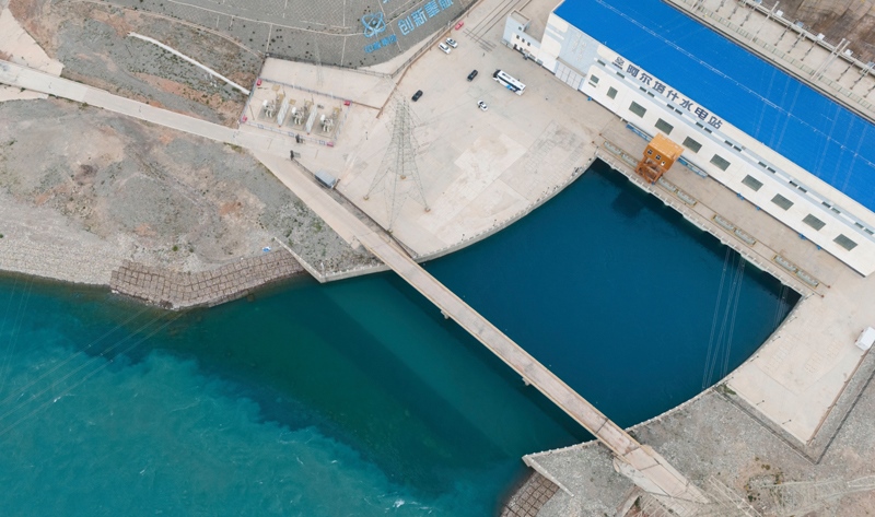 這是8月7日拍攝的阿爾塔什水電站(無(wú)人機(jī)照片)。