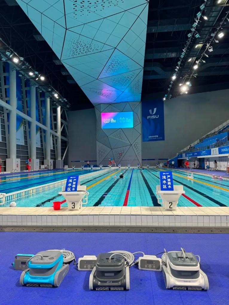 13日,世運(yùn)會(huì)皮艇球項(xiàng)目在簡(jiǎn)陽(yáng)文體中心游泳館開賽,與運(yùn)動(dòng)員們一同出現(xiàn)在泳池里的還有幾位特殊的“清潔工”。據(jù)場(chǎng)館工作人員介紹,賽事期間場(chǎng)館投入了泳池清潔機(jī)器人設(shè)備,完成對(duì)泳池的日常維護(hù)及清潔任務(wù)。