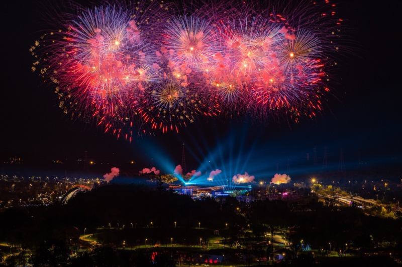 這是8月17日拍攝的閉幕式焰火表演。