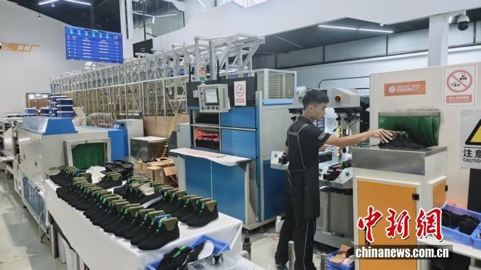 記者現(xiàn)場體驗(yàn)“雙馳鞋業(yè)大規(guī)模個性化定制”。中新網(wǎng)記者 閆旭 攝