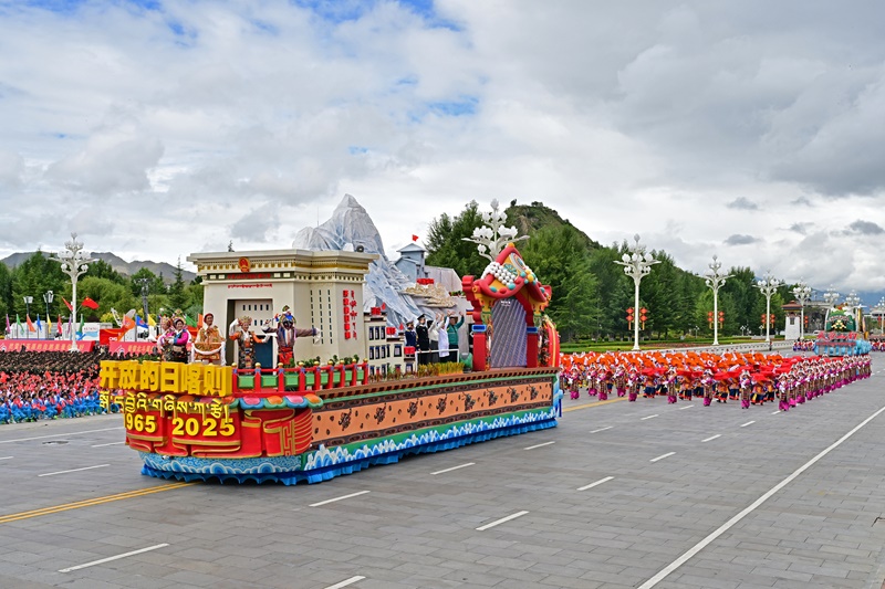 8月21日上午,西藏各族各界干部群眾約2萬人歡聚拉薩市布達(dá)拉宮廣場(chǎng),熱烈慶祝西藏自治區(qū)成立60周年。這是游行的彩車通過布達(dá)拉宮廣場(chǎng)。