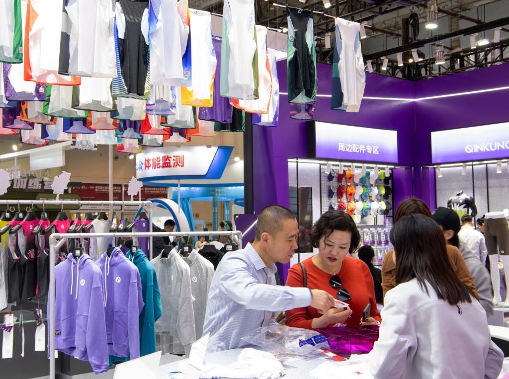 1月4日,觀眾在第五屆中國馬拉松博覽會現(xiàn)場挑選體育運(yùn)動服裝。當(dāng)日,為期三天的第五屆中國馬拉松博覽會暨2024福建省路跑產(chǎn)業(yè)博覽會在廈門國際會展中心開幕。新華社記者 魏培全 攝