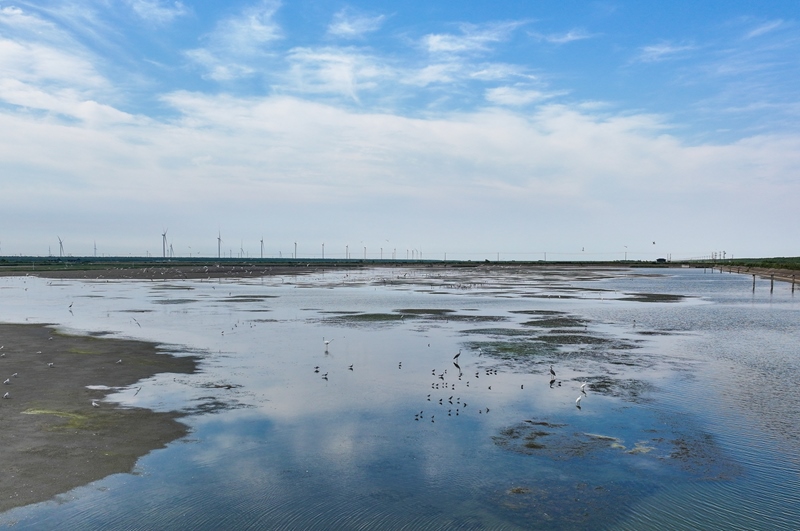 8月25日拍攝的東臺(tái)條子泥濕地“720”高潮位棲息地(無人機(jī)照片)。