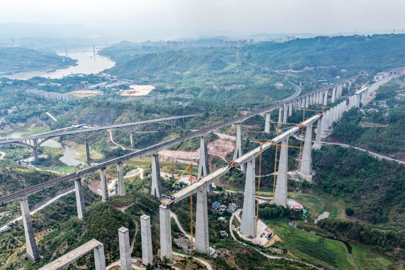 9月1日,由中國鐵建大橋局承建的新建重慶至萬州高速鐵路(渝萬高鐵)蔡家溝雙線特大橋順利合龍,為全線按期通車奠定堅實基礎。