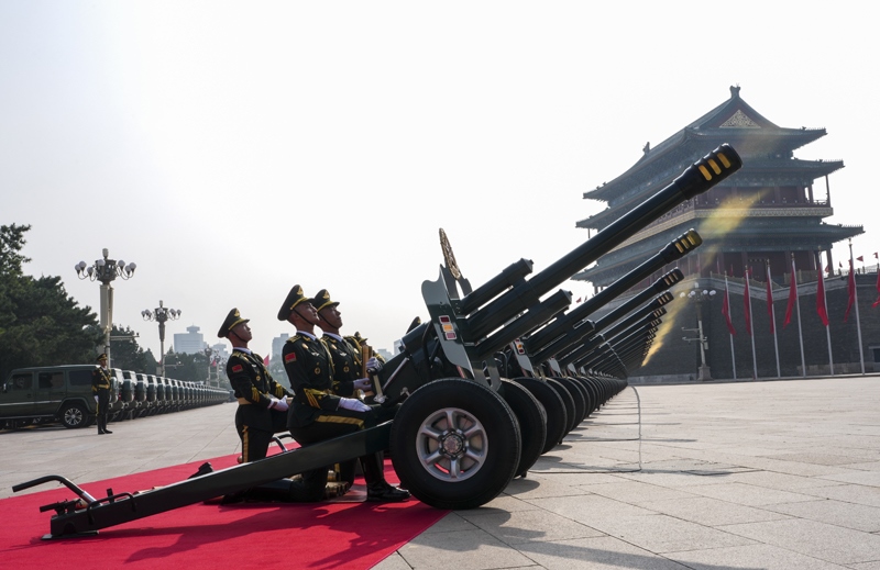 9月3日,紀(jì)念中國(guó)人民抗日戰(zhàn)爭(zhēng)暨世界反法西斯戰(zhàn)爭(zhēng)勝利80周年大會(huì)在北京隆重舉行。這是禮炮陣地。