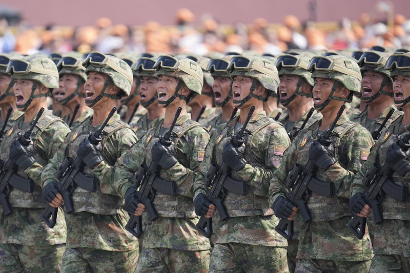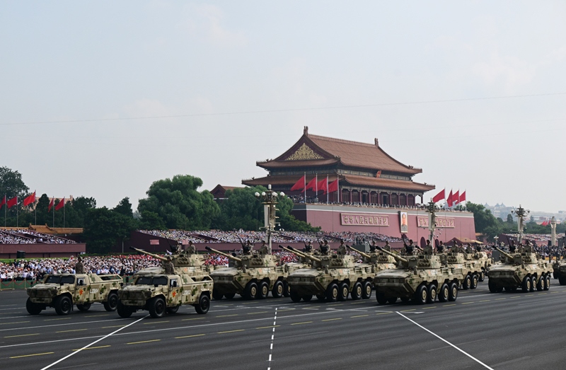 9月3日,紀(jì)念中國人民抗日戰(zhàn)爭(zhēng)暨世界反法西斯戰(zhàn)爭(zhēng)勝利80周年大會(huì)在北京隆重舉行。這是地面突擊方隊(duì)接受檢閱。