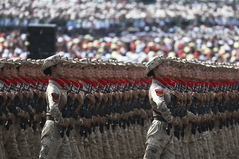 9月3日,紀(jì)念中國人民抗日戰(zhàn)爭(zhēng)暨世界反法西斯戰(zhàn)爭(zhēng)勝利80周年大會(huì)在北京隆重舉行。這是信息支援部隊(duì)方隊(duì)接受檢閱。