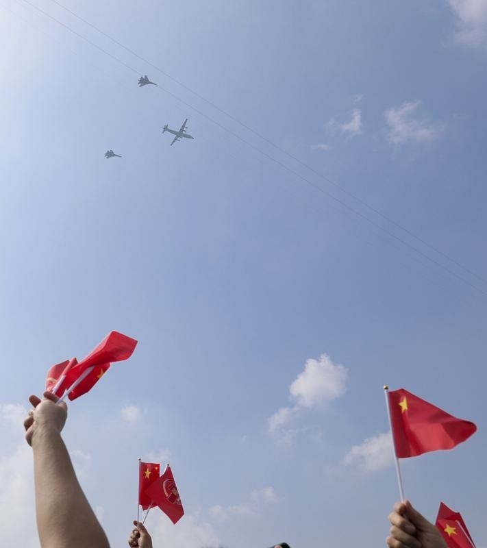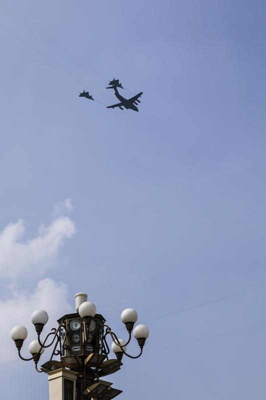 9月3日,紀(jì)念中國(guó)人民抗日戰(zhàn)爭(zhēng)暨世界反法西斯戰(zhàn)爭(zhēng)勝利80周年大會(huì)在北京隆重舉行。這是加受油機(jī)梯隊(duì)接受檢閱。