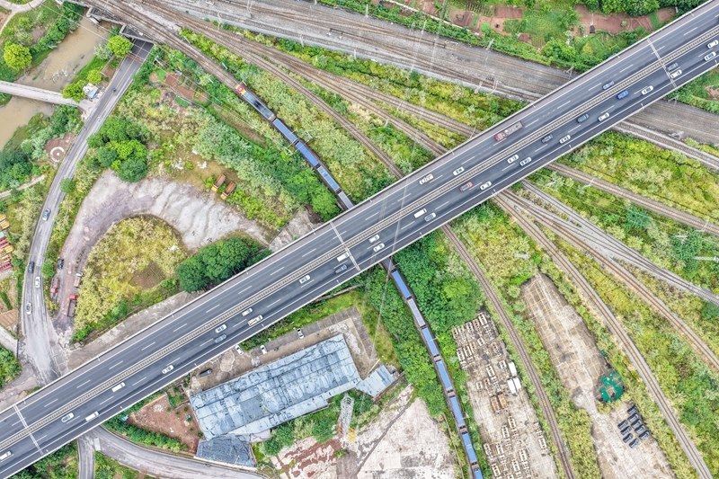 9月8日,滿(mǎn)載“重慶造”汽車(chē)的中歐班列(成渝)在重慶團(tuán)結(jié)村中心站順利發(fā)車(chē)(無(wú)人機(jī)照片)。