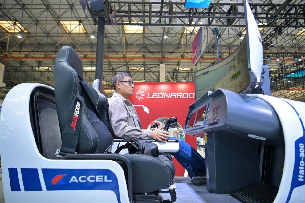 模擬機(jī)上,屏幕上正顯示GIS系統(tǒng)和MR技術(shù)生成的虛擬現(xiàn)實(shí)場景。隨著機(jī)器開啟,座位搖晃、手柄震動,伴隨飛機(jī)起降、顛簸等過程中的失重感,記者體驗(yàn)了一把“開飛機(jī)”。“我們開發(fā)出虛擬飛行訓(xùn)練視景系統(tǒng),可以針對不同城市以及特殊場景搭建對應(yīng)環(huán)境,支持低空環(huán)境飛行訓(xùn)練。”北京賽四達(dá)科技股份有限公司工作人員劉正晨說。