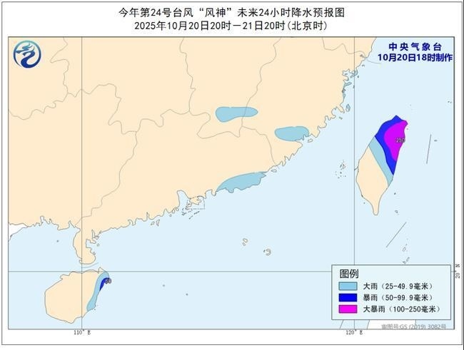 降水預(yù)報(bào):20日20時(shí)至21日20時(shí),福建東北部和南部、江西南部、廣東東南部沿海、海南島東部、臺(tái)灣島中北部有大到暴雨,臺(tái)灣島北部局地有大暴雨(100-250毫米)。