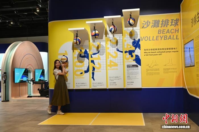 10月23日,香港科學(xué)館舉辦“國家發(fā)展成就系列──臻至完美:運動與科學(xué)的交匯”展覽,展示全國運動會的歷史及第十五屆全國運動會香港賽區(qū)的賽事項目。圖為一名女士體驗沙灘排球項目,了解運動員的跳躍高度。 中新網(wǎng)記者 李志華 攝