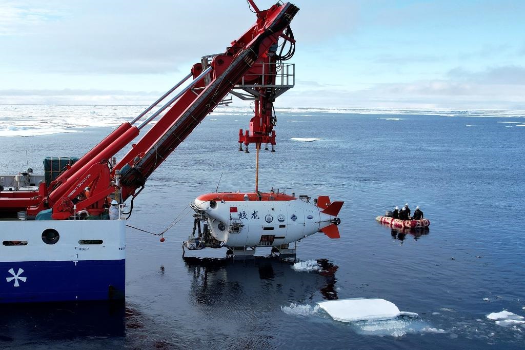 搭載著“奮斗者”號載人深潛科考隊的“探索三號”于今年7月22日從三亞出發(fā),會同“蛟龍”號載人深潛團隊赴北冰洋海域執(zhí)行深潛任務(wù)。其間,科考隊在北冰洋作業(yè)56天,進行了一系列科學(xué)考察和試驗。在海冰覆蓋率大于80%的北冰洋中央海盆,科考隊進行了國際上首次加克洋中脊的載人深潛科考,最大下潛深度達(dá)5277米。