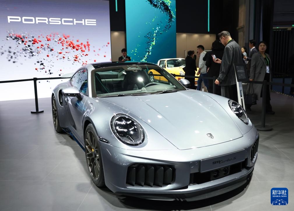 11月6日在進博會汽車及智慧出行展區(qū)大眾汽車展臺拍攝的新款保時捷911Turbo S。這是該產品在亞洲首發(fā)。
