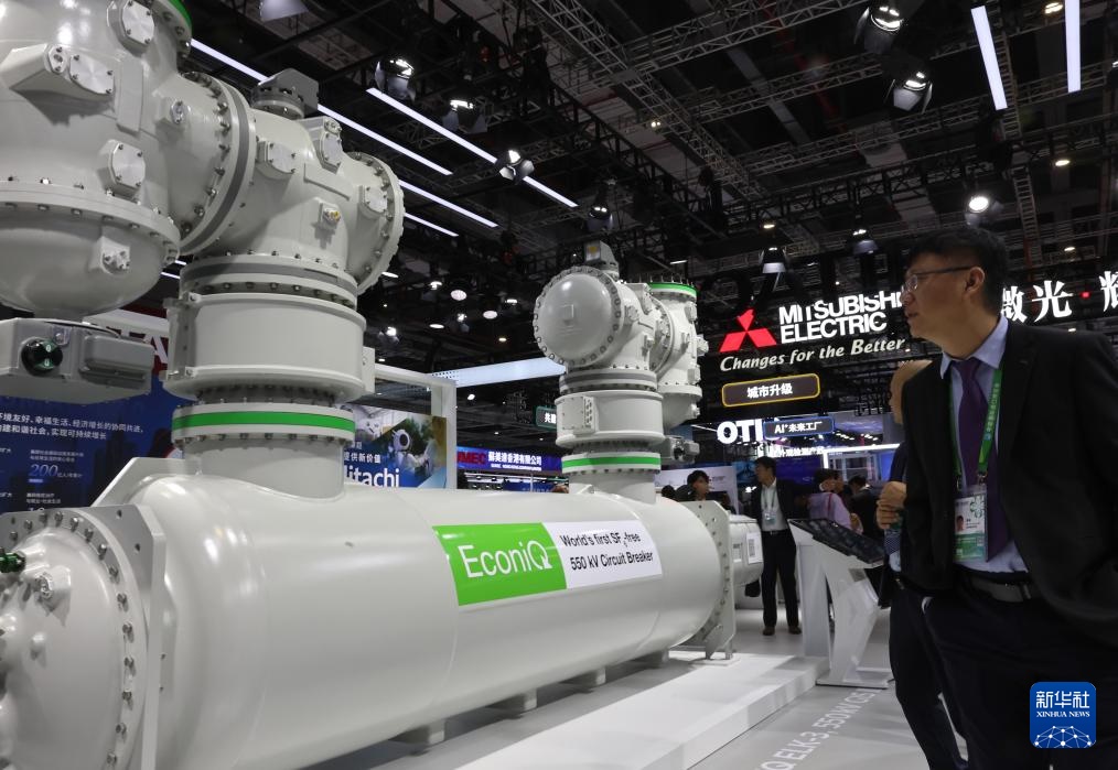 11月6日,參觀者在日立公司一款封閉式氣體絕緣開關設備展品旁駐足觀看,這是該型號產品的中國首展。