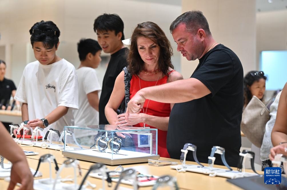 11月9日,外國顧客在三亞國際免稅城選購商品。新政將適用人群擴(kuò)至離境旅客。