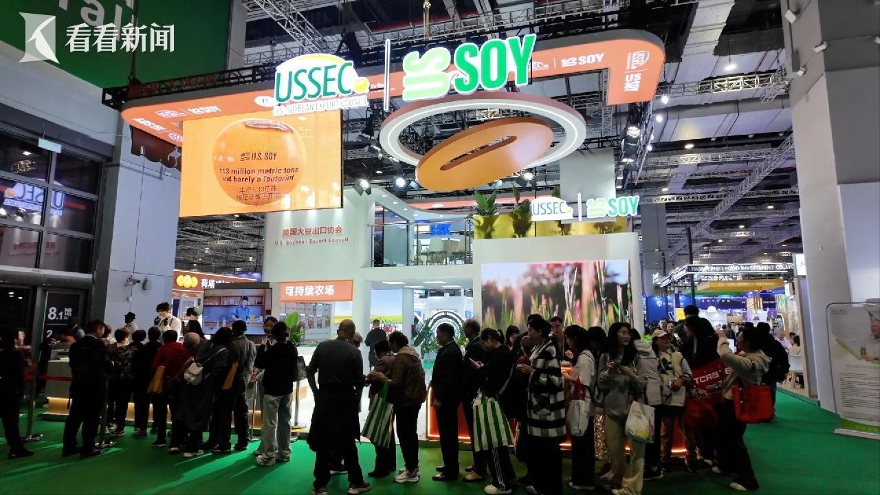 蘇健說的不是客套話。進博會一開始,他的行程就滿滿當當——開館剪彩、客商對接、媒體專訪。他的身后,是一群帶著中文名片、中文宣傳資料的豆農,賣力帶貨?!罢绱蠹以诂F(xiàn)場看到的,我們可以把大豆加工成大豆油,這種油品更適合高溫烹飪?!泵绹罐r蓋思凱說。